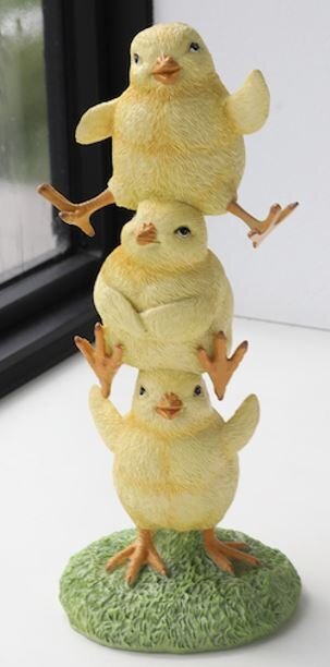 ユニークなデザインのひよこの置物です。