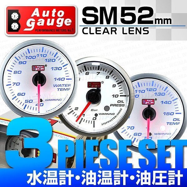 > 【3点セット 水温計/油温計/油圧計】オートゲージ スイス製ステップモーター メーター ホワイトフェイス 追加メーター 計器 オープニング