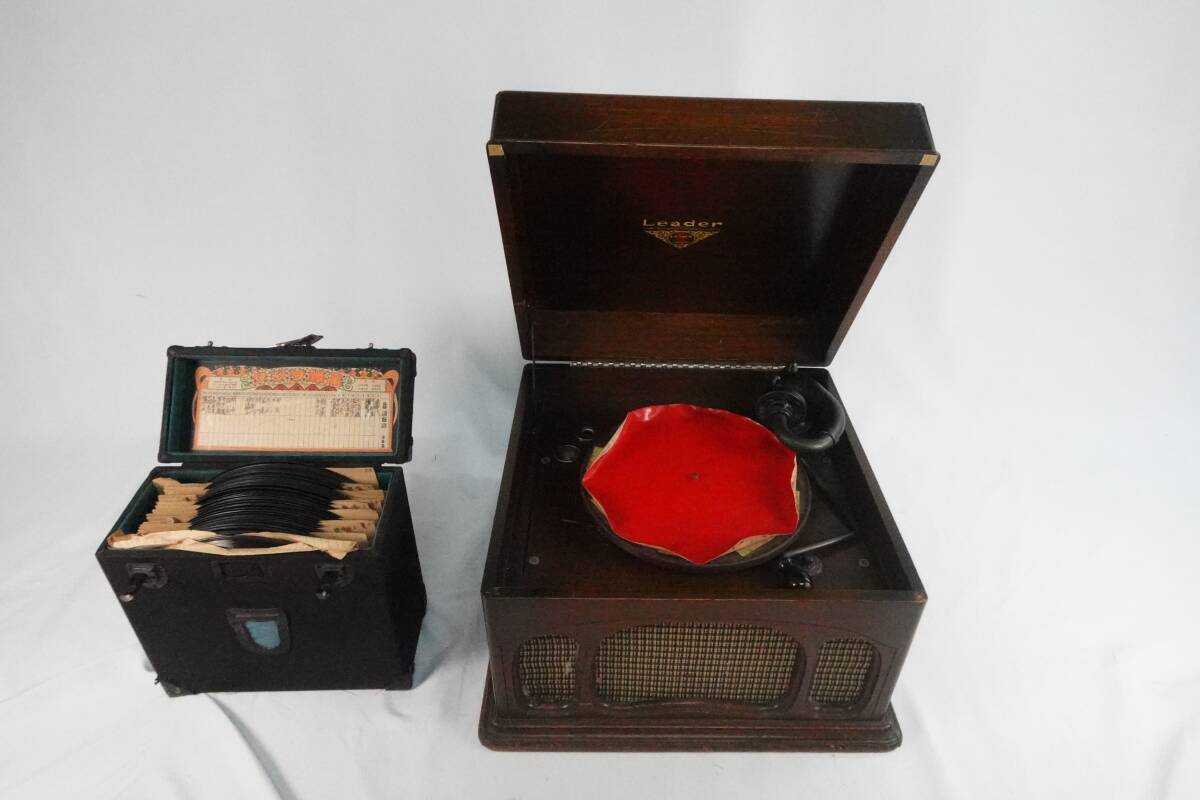 - LEADER HISMARTERS voice 蓄音機 音響機器 機材 木製 レコード 40枚付き