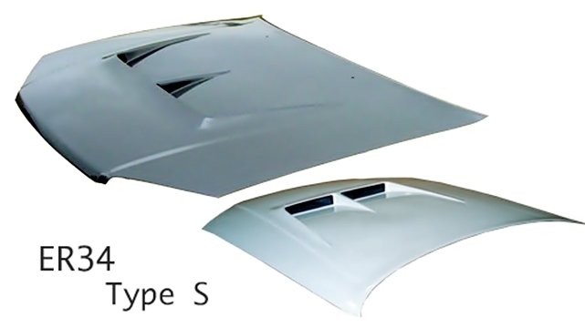> 「高勢スタウト/STOUT」スカイライン(ER34)用エアロボンネット TypeS(FRP)