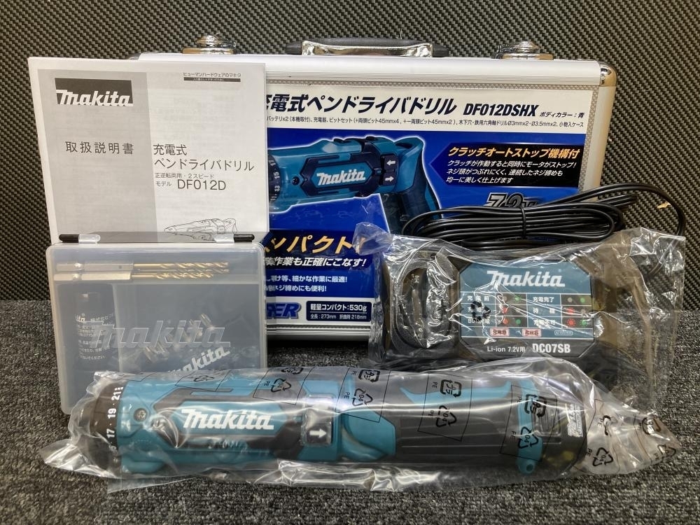 > 013♪未使用品・即決価格♪マキタ makita 充電式ペンドライバドリル DF012DSHX バッテリ×2 充電器 7.2V1.5Ah 青