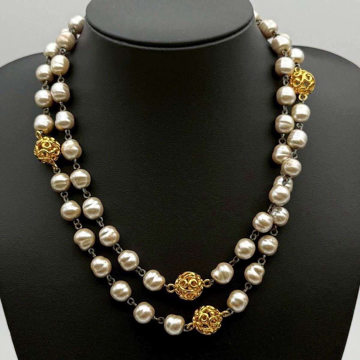 > 【希少・極美品】SONIA RYKIEL ソニアリキエル ネックレス チョーカー ロングチェーン パール カサンドラ ゴールド コスチュームジュエリー