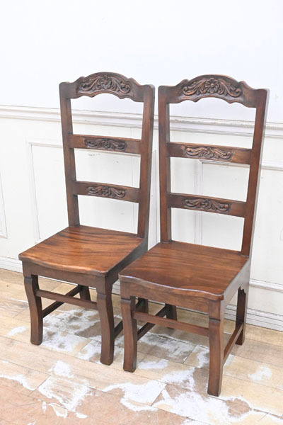 - HH152 神戸家具 木製 コロニーハウス ハイバック 彫刻 椅子 チェア ダイニング リビング 2脚セット