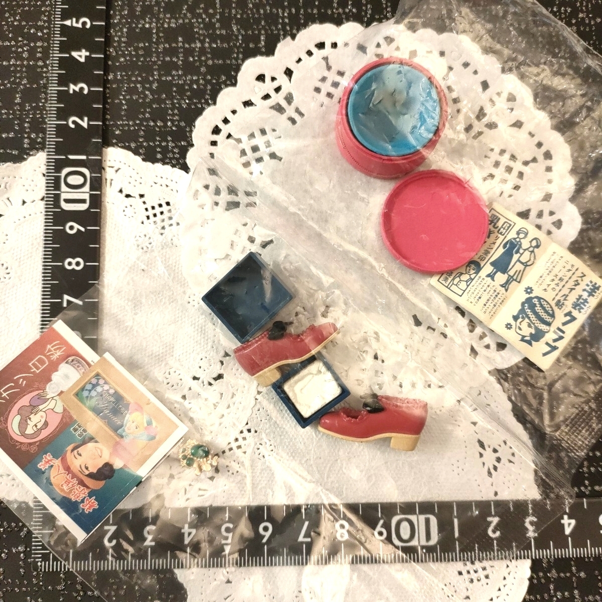 - 5r1025 未使用 麗しきモダンガール 3.今日はデパートでお買ひ物ですの リーメント ミニチュア ぷちサンプル パンプス 帽子 ブローチ セット