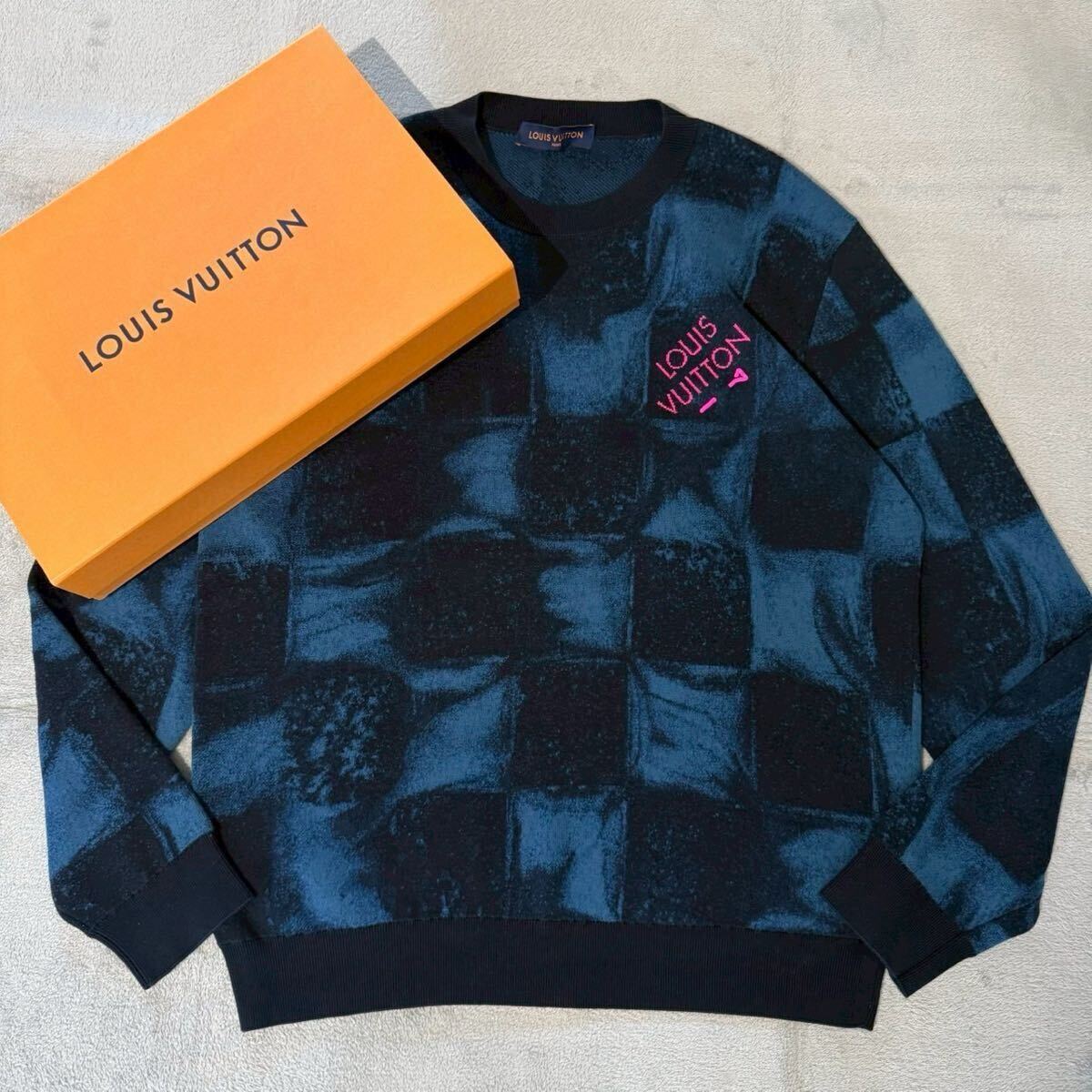 > 【未使用級】XLサイズ★ LOUIS VUITTON ルイヴィトン ダミエ ソルト ジャガード クルーネック ニット セーター メンズ 近年モデル 箱付き