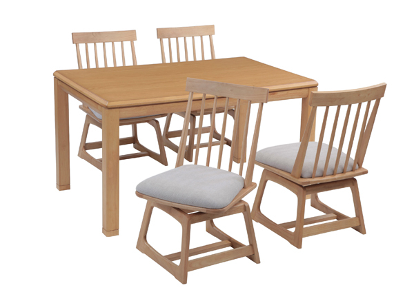 - ハイタイプ高脚こたつ ダイニングコタツ TUBAKI135センチ幅 長方形+肘無回転椅子4脚の5点セット ナチュラル色
