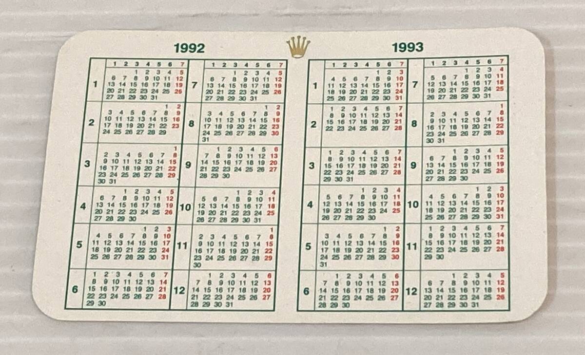 - ★☆純正 ROLEX ロレックス カレンダー カード 1992年 1993年 ベージュ ヴィンテージ アンティーク カード型カレンダー 付属品 11☆★