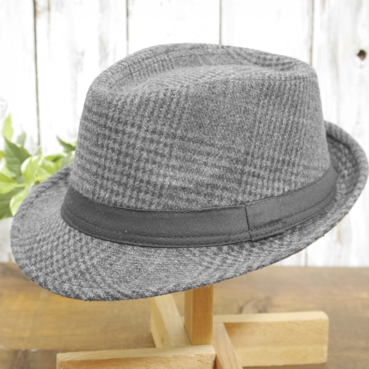 - フェドラハット千鳥チェック ダークグレー 秋冬 男女OK送料\450 サイズ調整可 中折れ ボルサリーノ パナマ
