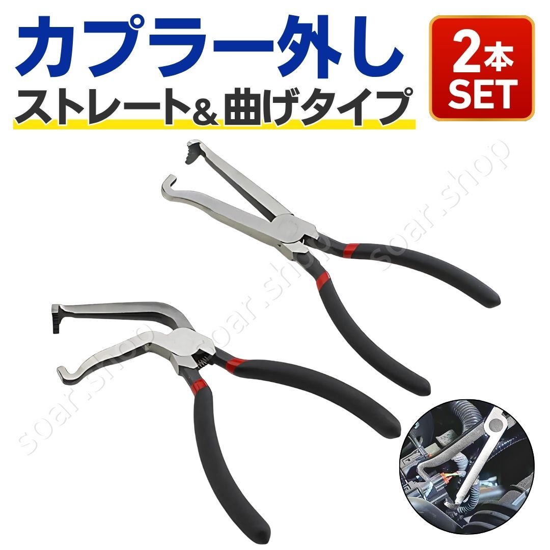 > カプラー外し カップリングツール 工具 2本セット ストレート 曲げタイプ ベント 曲がり プライヤー コネクター 配線カプラー 車 整備 DIY