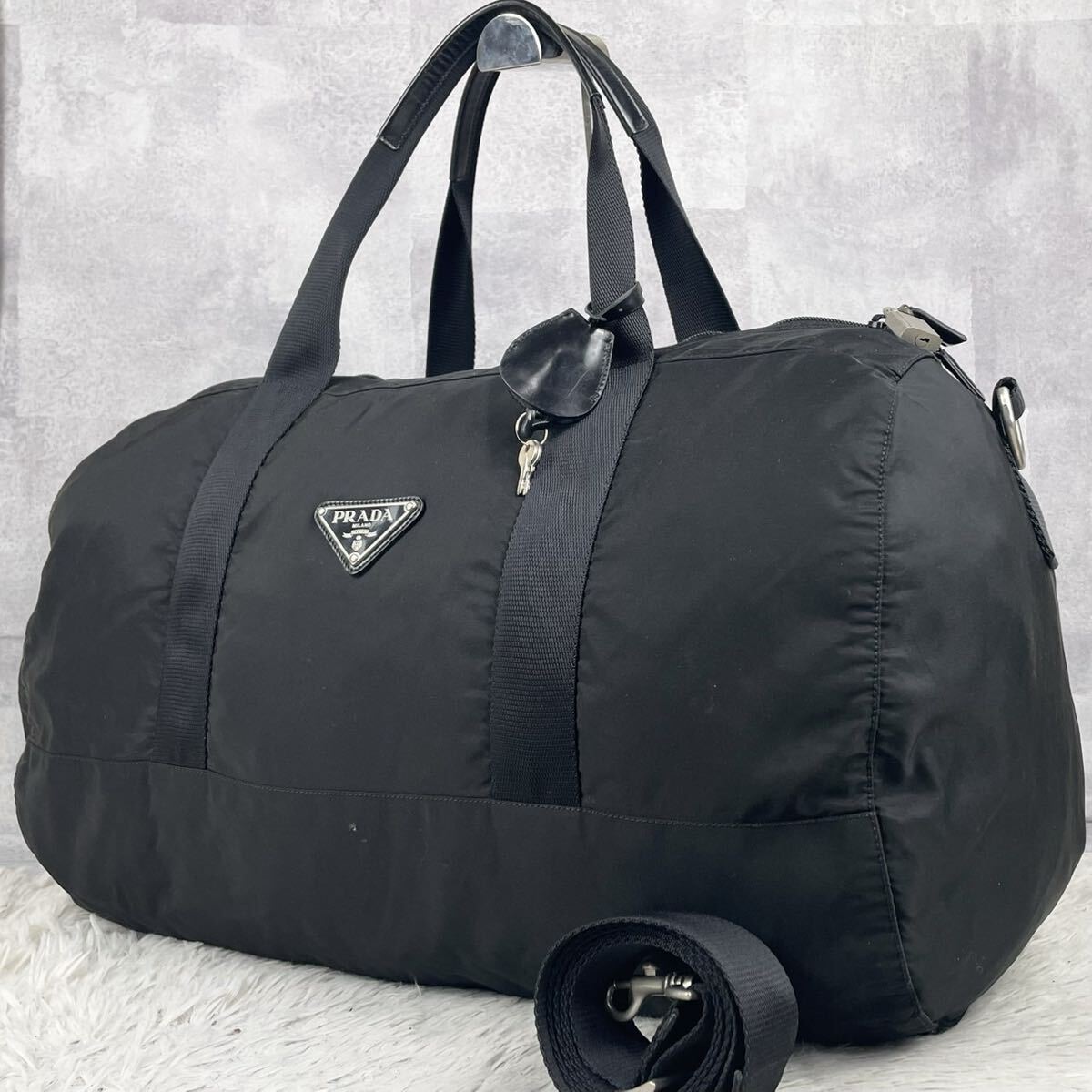 - 美品 PRADA プラダ ボストンバッグ 2way ハンドバッグ トート ポーチ ショルダー ナイロン レザー ステッチ ファスナー ロゴ型押し