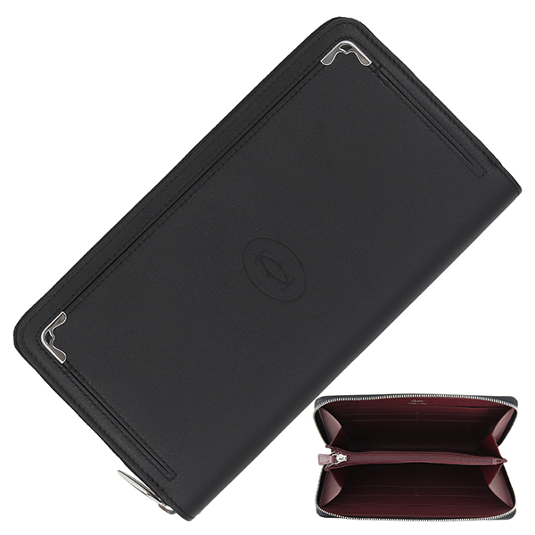 - カルティエ 財布 マストドゥカルティエ ラウンドジップインターナショナル ウォレット ブラック ボルドー h-a496sp