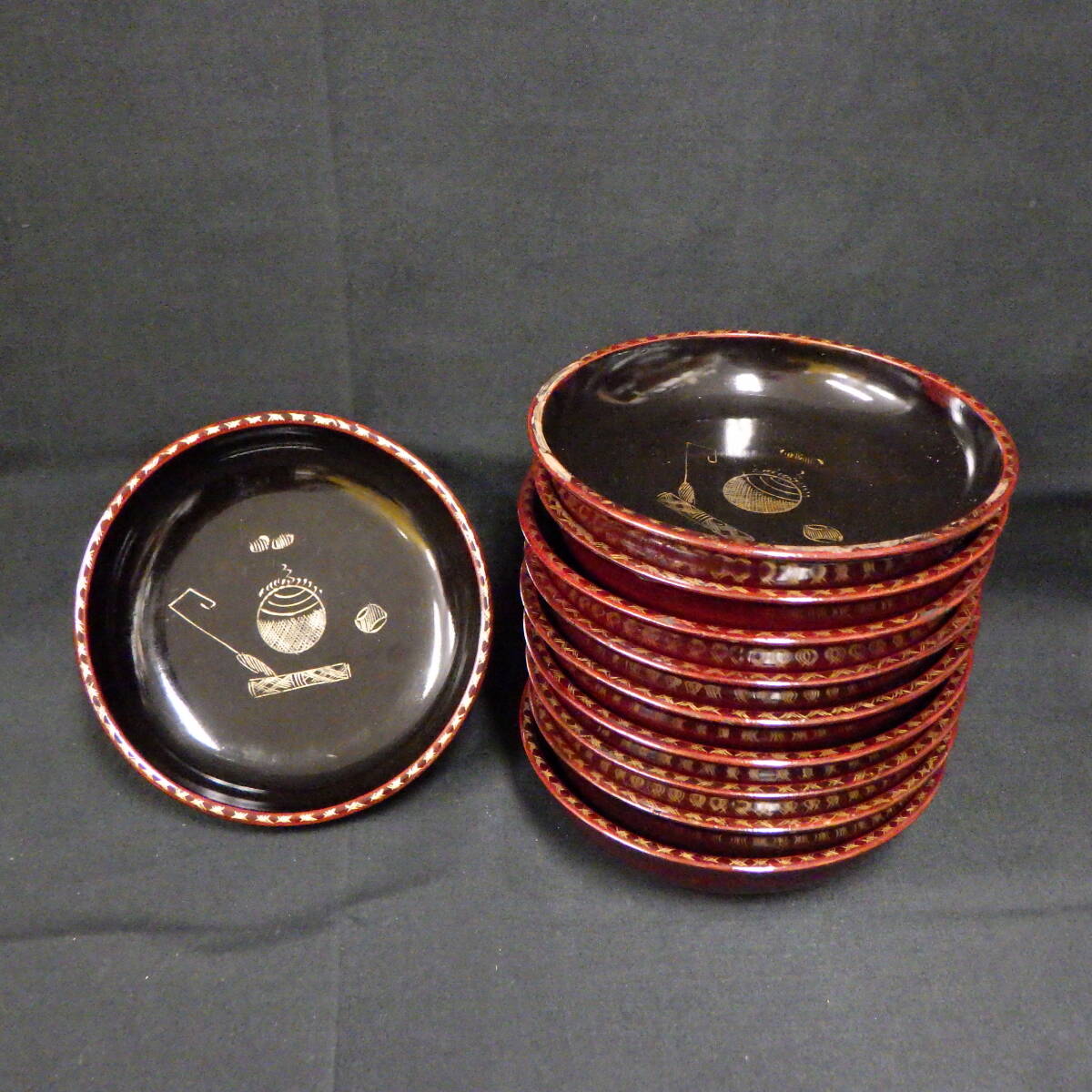 - 昭和 レトロ 漆器 輪島塗 沈金 金蒔絵 木製 皿 10客 時代物 年代物