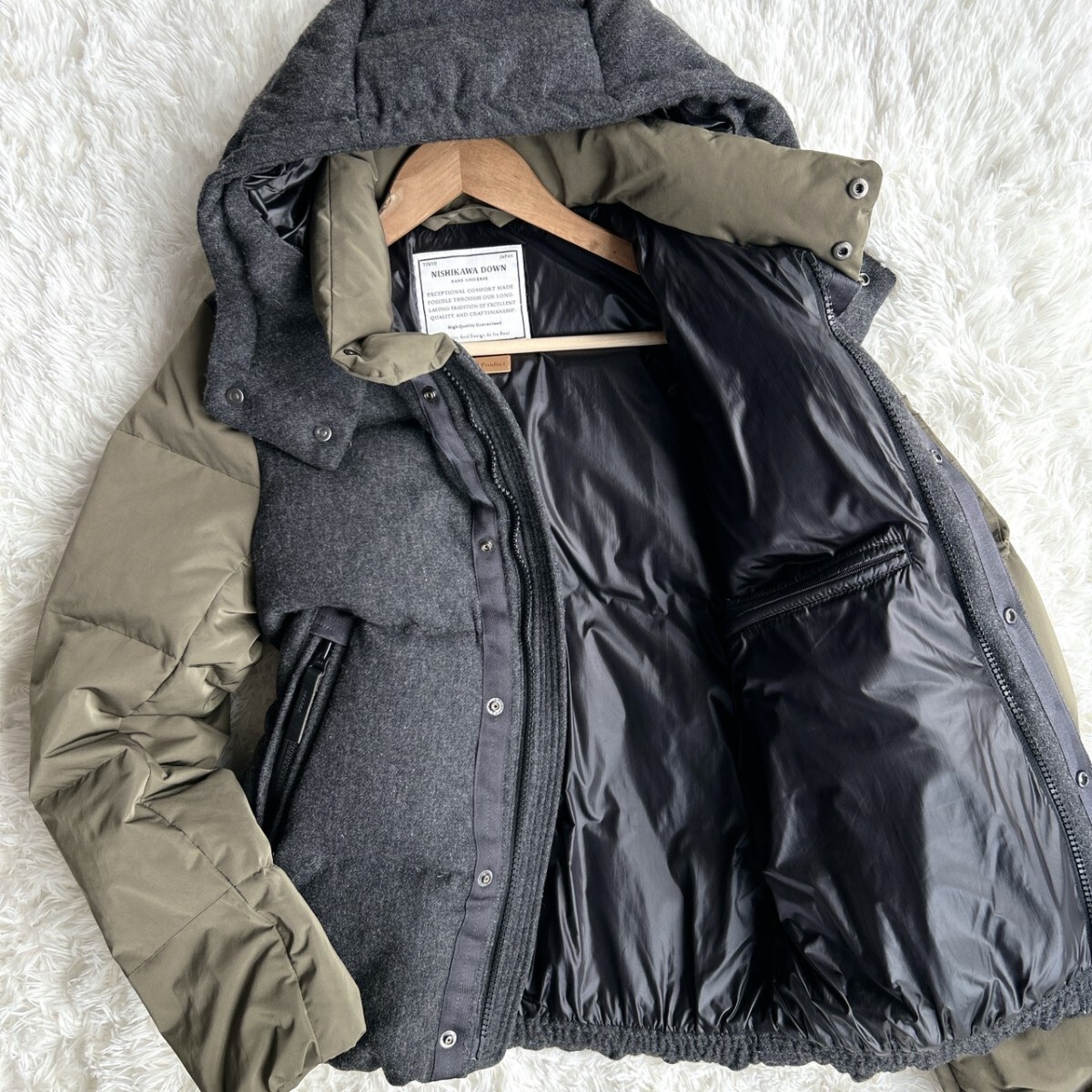 - 西川ダウン × nano universe ナノユニバース ダウンジャケット ダウンコート フード着脱可 2way カーキ バイカラー メンズ M 限定 Limited