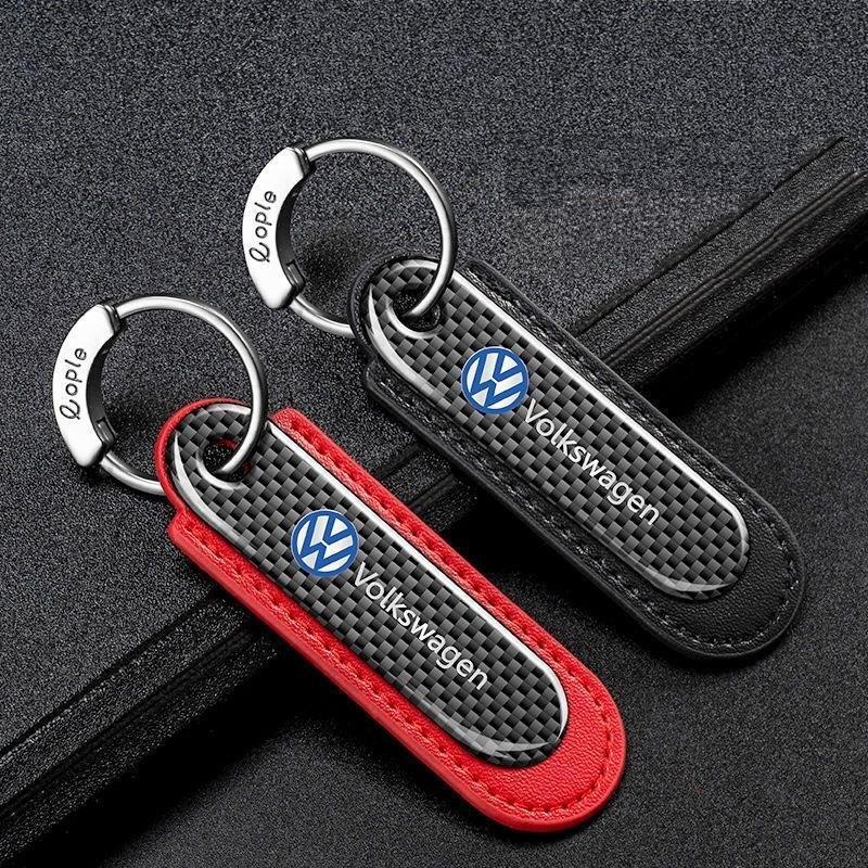 - フォルクスワーゲン カーボンキーホルダー 本革レザー 車のキーチェーン 車のキータグペンダント 高級 キーリング 外せるリング