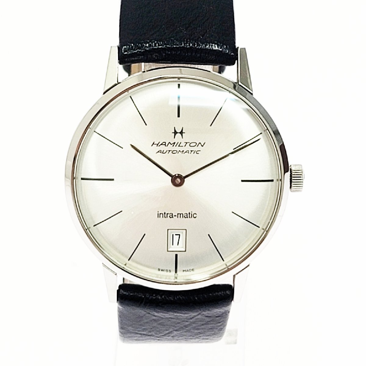 > 【1円スタート】【訳あり品】HAMILTON ハミルトン H384550 イントラマティック デイト SS シルバー文字盤 自動巻き メンズ腕時計 503704