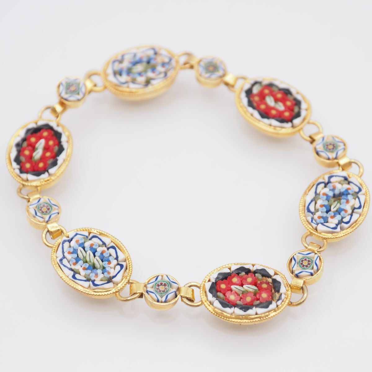 - H034 モザイクガラス ブレスレット フラワー ゴールド デザイン