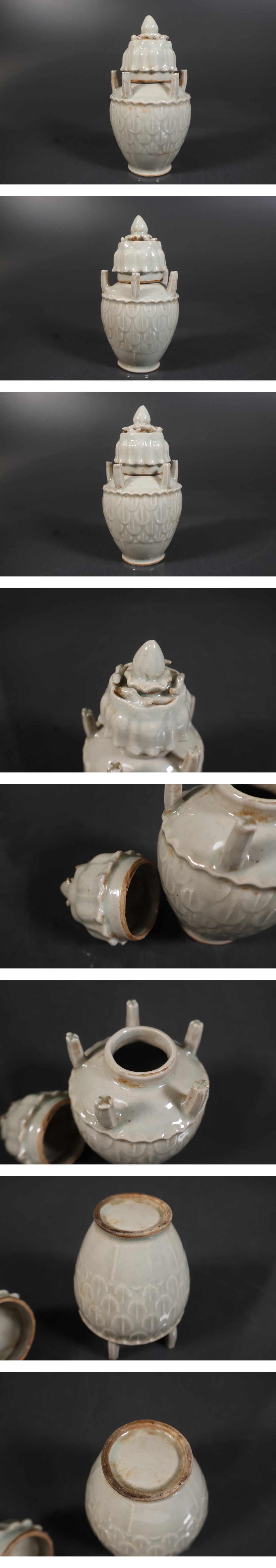- 【和】(A3638) 時代古作 唐物 唐青磁耳付壺 蓋付瓶 小壺