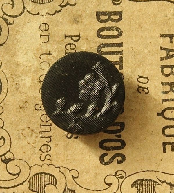 > 即決 プレスドホーン製 ブラックボタン 1個 φ13mm 厚5mm 黒染め 角ボタン 花 植物 パーツ リメイク フランス輸入
