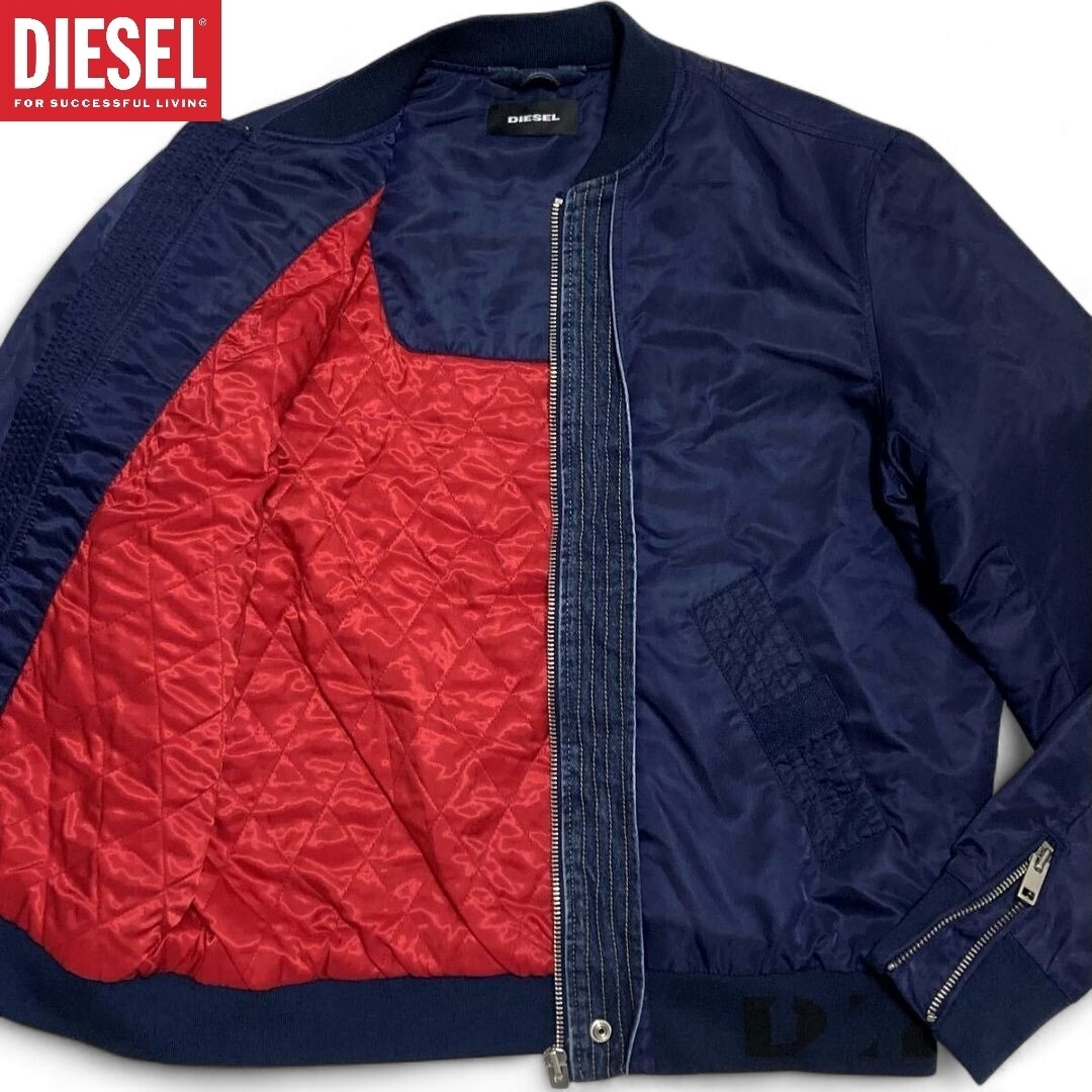 > 未使用級●XL ディーゼル デニム切替 フライトジャケット MA-1 キルティング 中綿 メンズ DIESEL ボンバージャケット 裾ロゴ ライダース