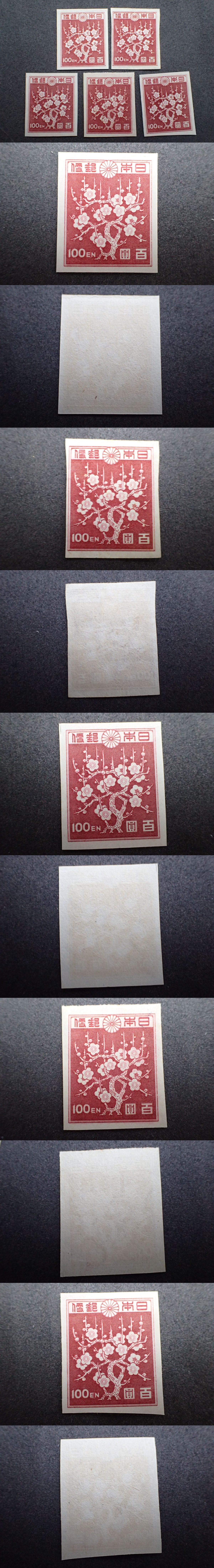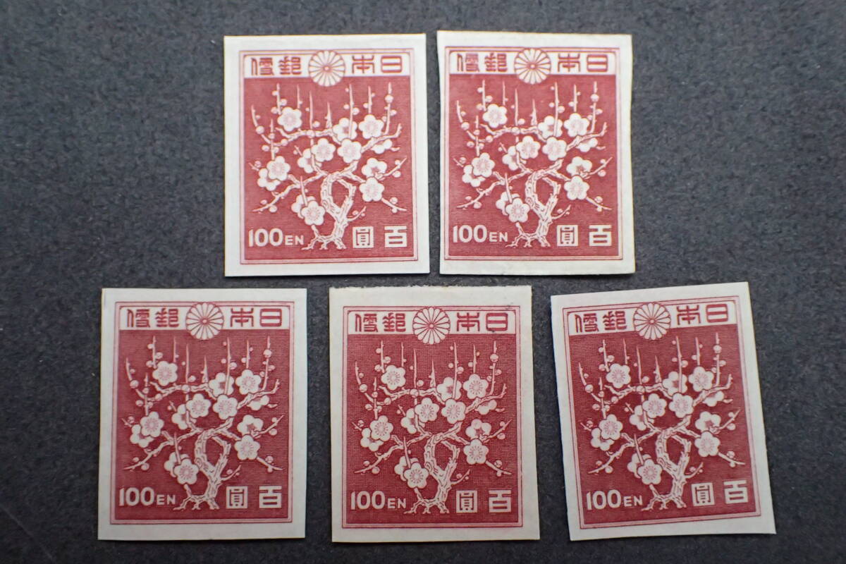 - ◆希少◆日本切手 1947年 第1次新昭和切手 100円 梅花模様 未使用 バラ計5枚◆美品◆