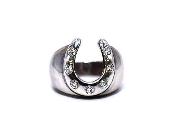 > 指輪 リング 925 Silver ホースシュー 馬蹄 太幅 U字型 ラッキーモチーフ ジュエリー/シルバー×クリア/6号/訳有/1円スタート/AY