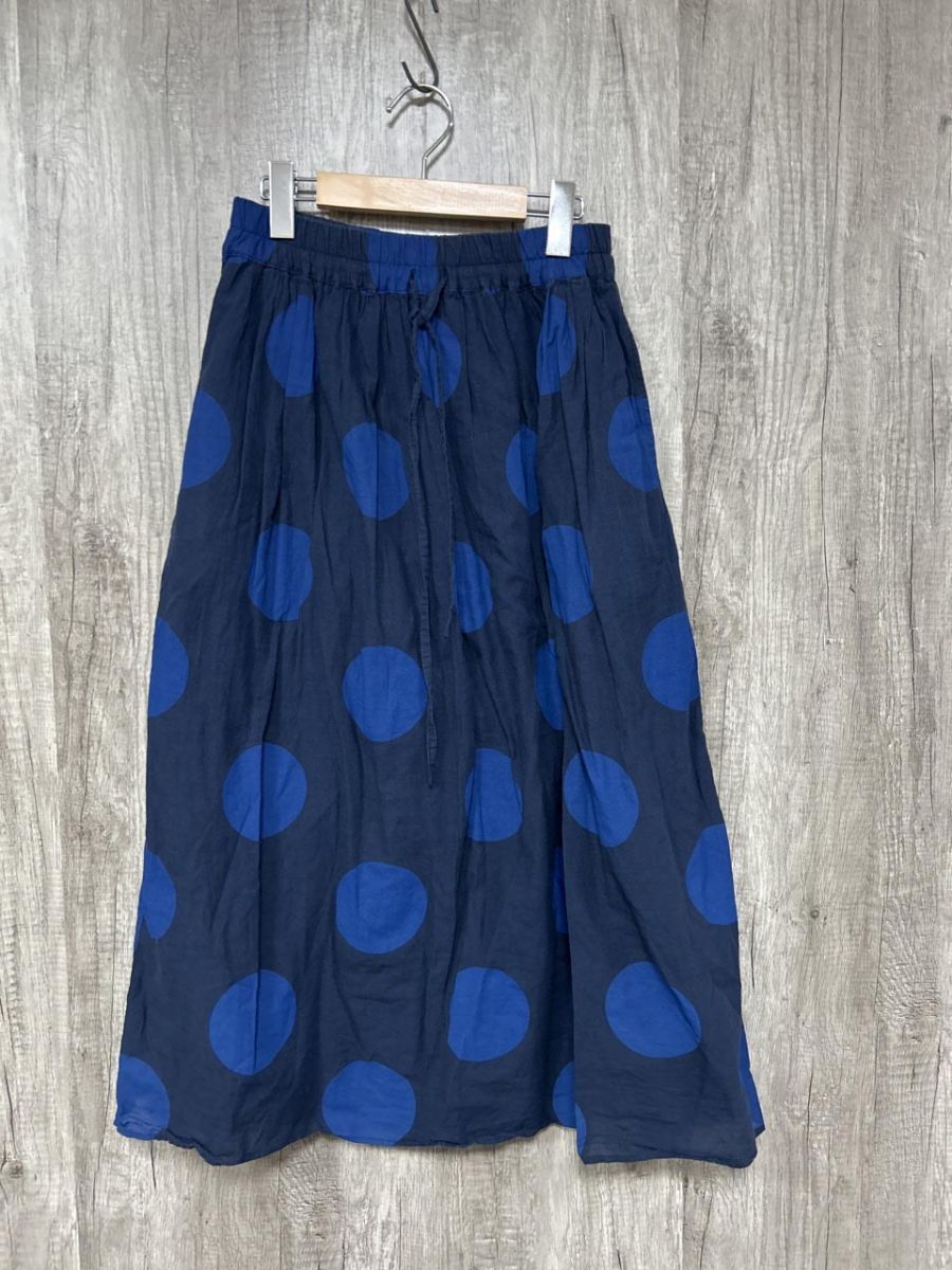 - ichi イチ リネン ラミー混 ドット柄 フレア ロング スカート 紺 ■◆ レディース