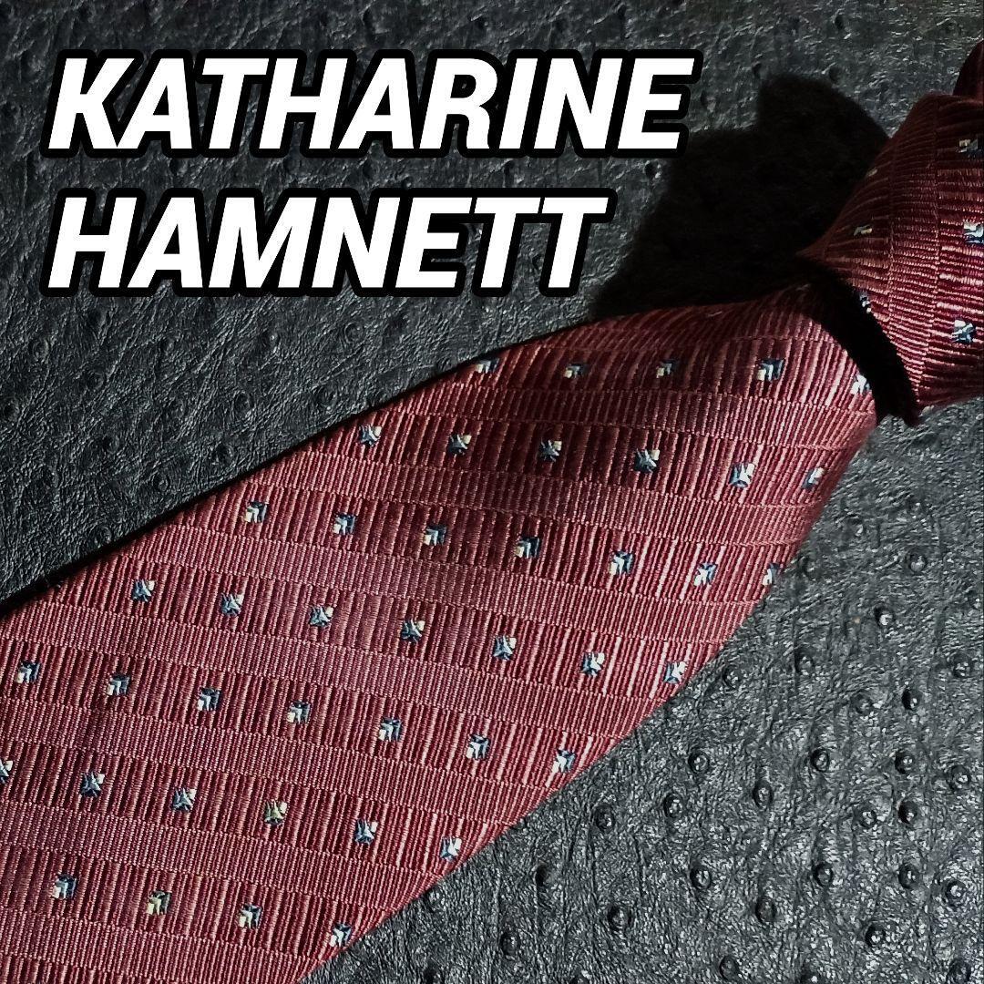 - K718KH ◆ キャサリンハムネット 刺繍小紋柄 ワインレッド系 ネクタイ