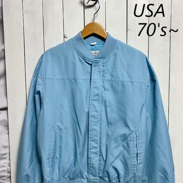 > USA古着 70s~ キャップショルダー ダービージャケット 44 水色 ドリズラー スウィングトップ オールド ヴィンテージ やや薄手 USA製 ●305