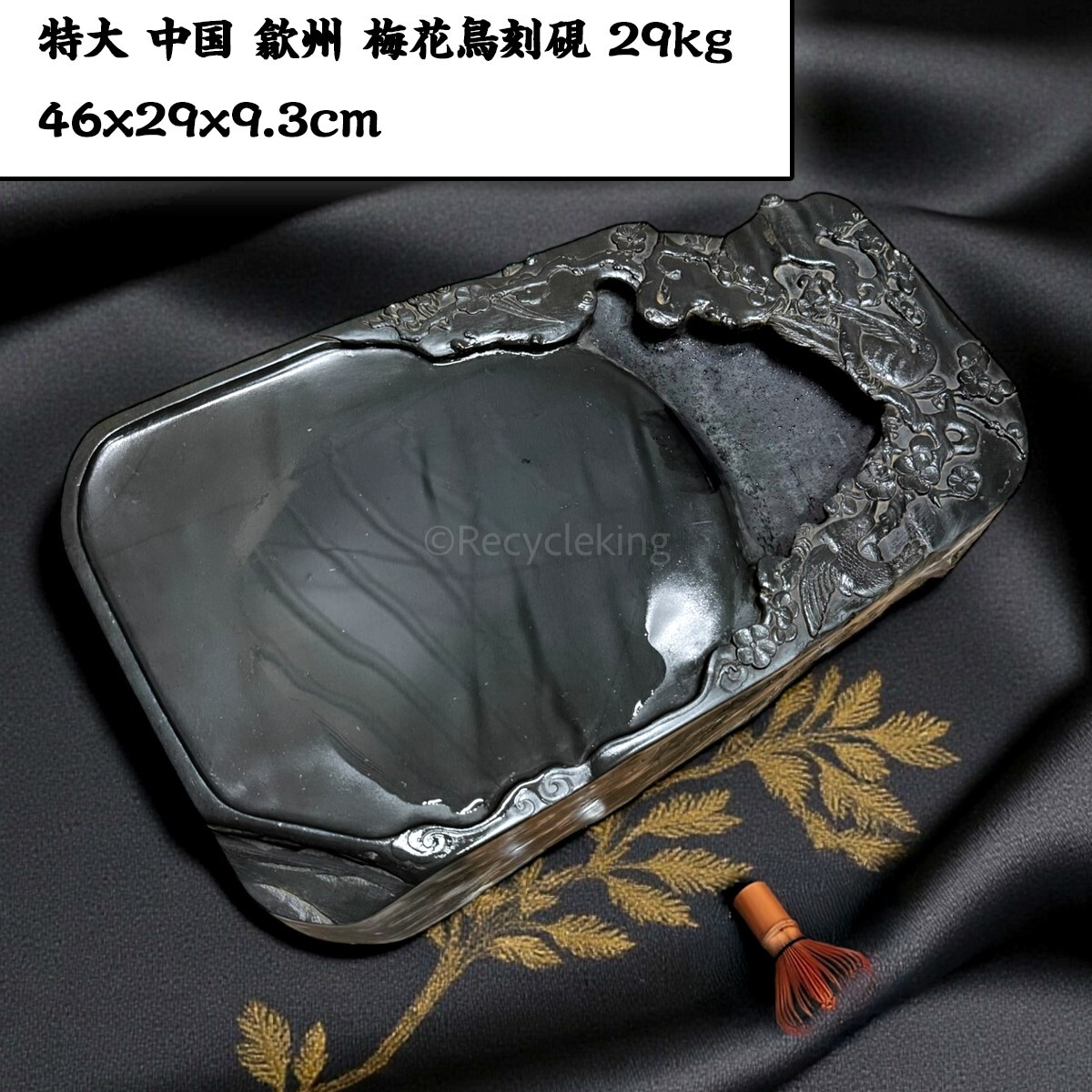 - 特大 中国 歙州 水波羅紋 梅花鳥刻硯 29kg 46x29x9.3cm 紅木硯箱入 古硯 唐硯 書家収蔵品 文房四宝 書道具 すずり 20251026-34