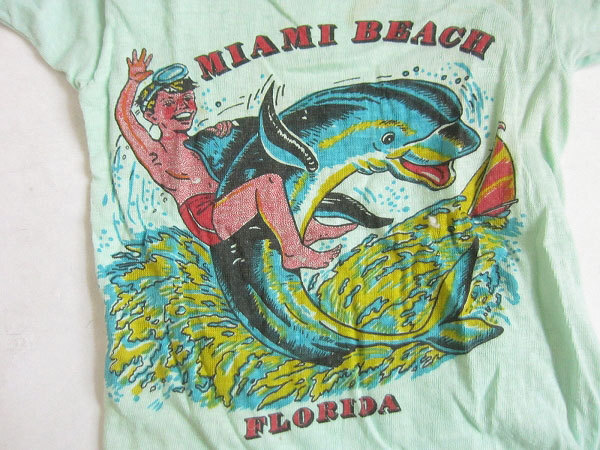 > 【ベビー服/子供用】ビンテージ/イルカ少年柄/アメリカTシャツ/薄緑系/キッズサイズ/雰囲気系コレクションにも/D128-01-1005