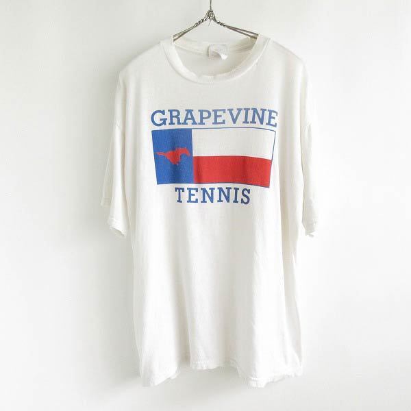 > 2000-01/GRAPEVINE TENNIS/半袖Tシャツ/白系【M】コットン/クルーネック/丸胴/丸首/PV-01-9272Y