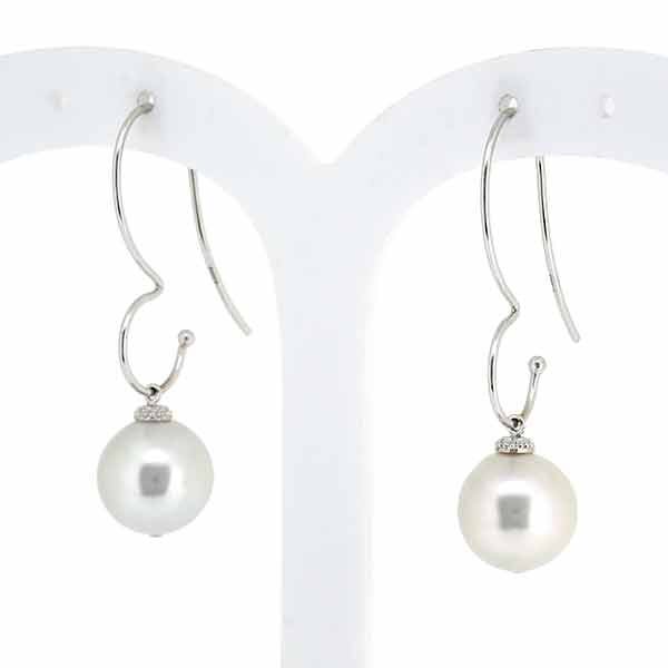 > 送料無料 本物 K14WG パール ダイヤモンド ピアス ホワイトゴールド 真珠 6月誕生石 ロング 一粒 レディース 洗浄済み オシャレ 揺れる