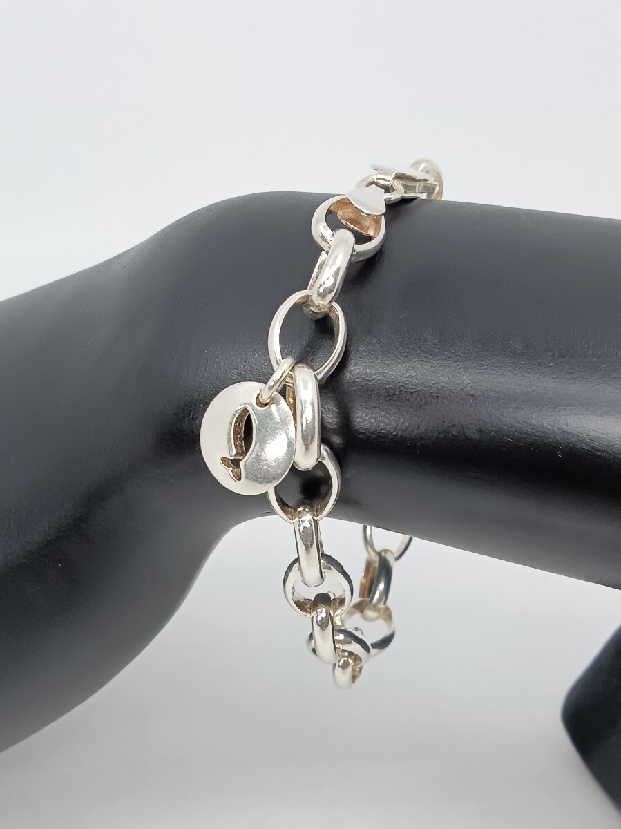 - シルバー チャーム付き オーバルチェーンブレスレット 925刻印