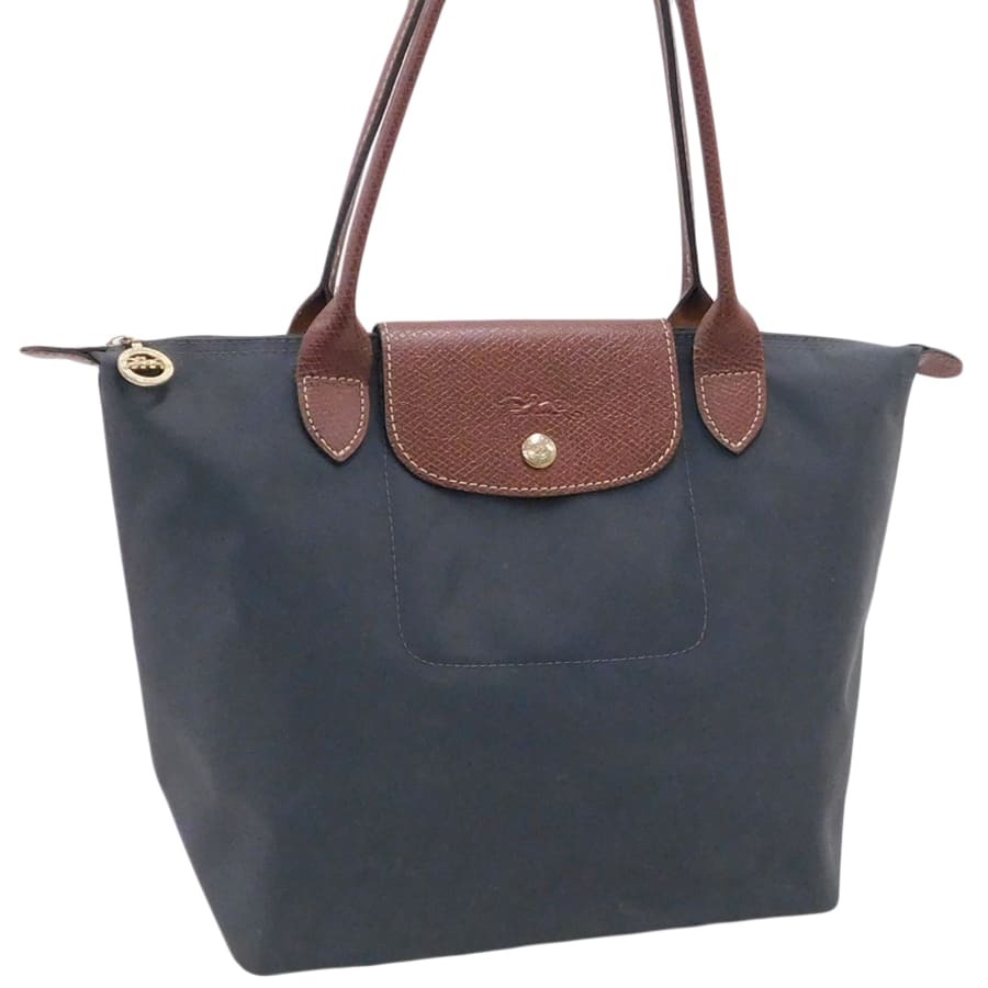 > 1円■ロンシャン トート グレー×ブラウン系 ナイロン×レザー 普段使い LONGCHAMP ■E.Bii.zE-24