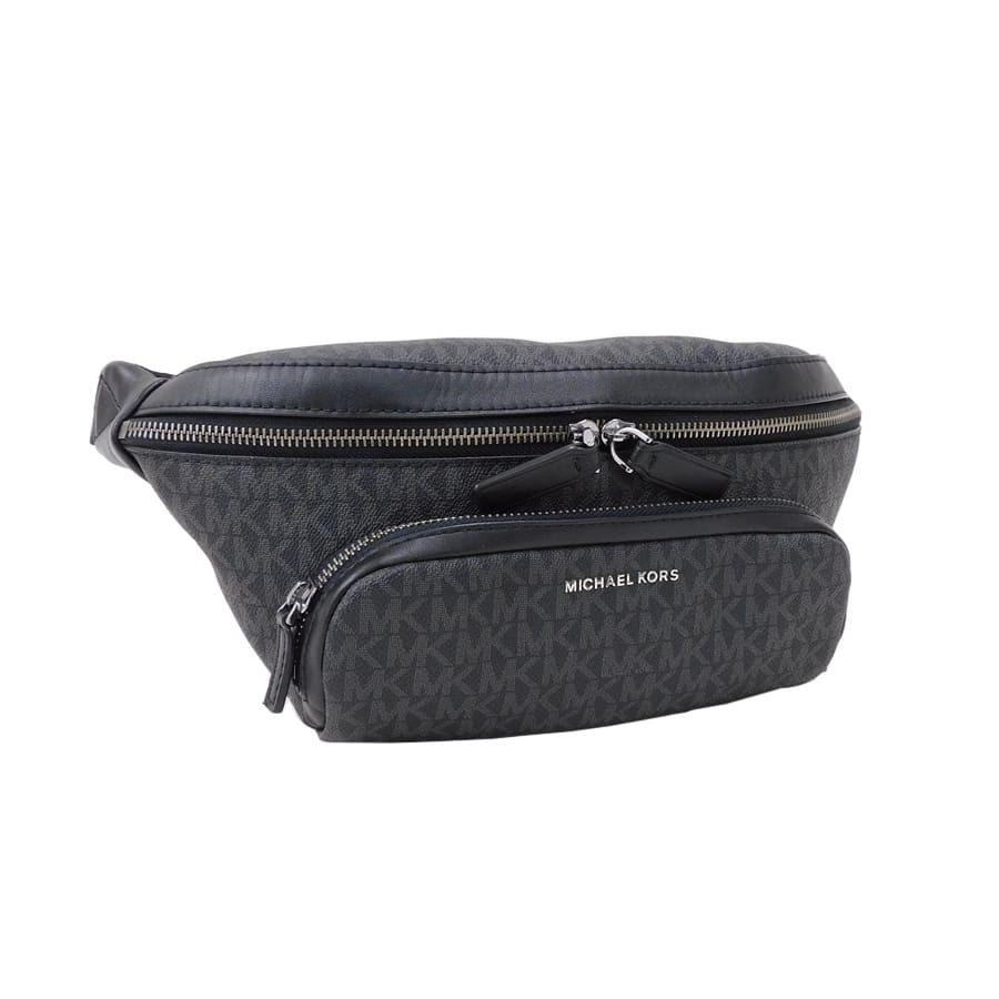 - 1円■極美品 マイケルコース ウエストバッグ ブラック系×グレー系 PVC×ナイロン 総柄 MICHAEL KORS ■E.Bil.zE-06