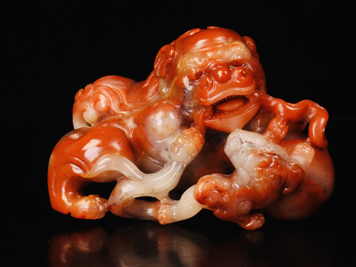 - ▽鴻▽金石篆刻 寿山石彫 瑞獣呈祥置物 時代物 中国古美術 骨董品