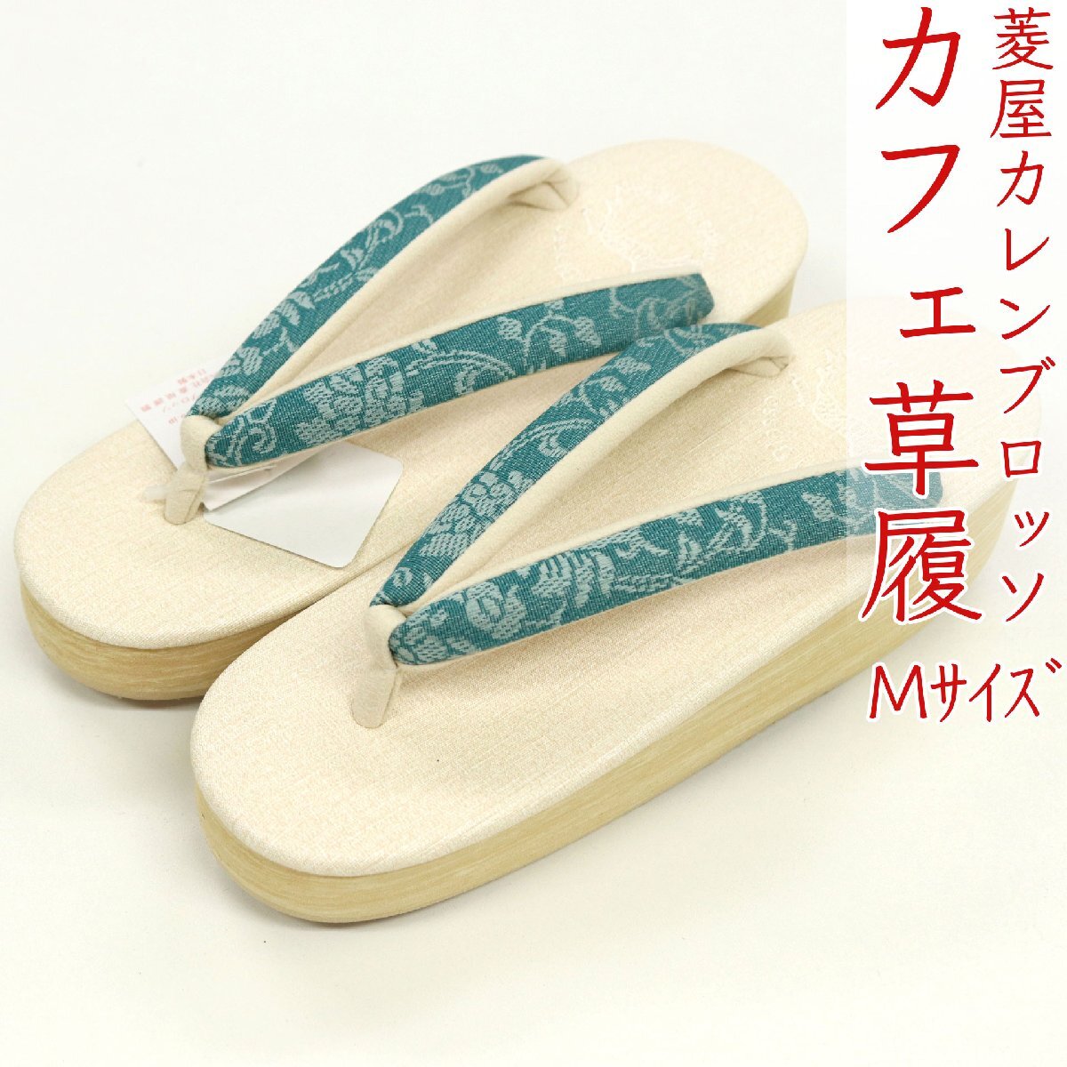 - 和遊館 sa3414 菱屋カレンブロッソ 博多織 鼻緒使用 カフェ草履 オフホワイト ビブラムソール Mサイズ