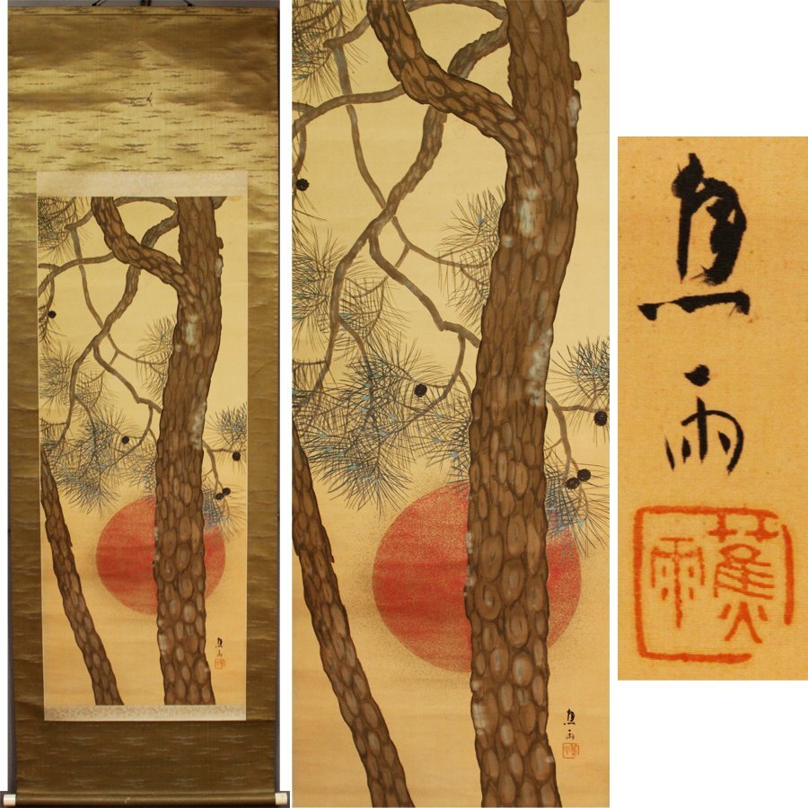 - 《源》【即決・送料無料】会津 絵師 野出蕉雨 筆 松林・旭日図/箱付