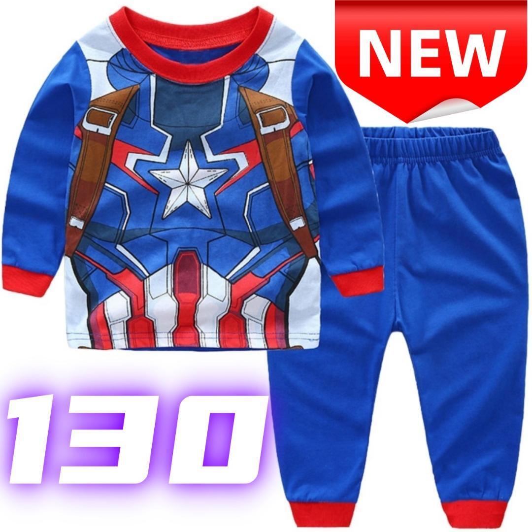 - [新品]キャプテンアメリカ キッズパジャマ 男の子 長袖 上下セット 子供服 春秋 ルームウェア コットン ハロウィン クリスマス 130cm