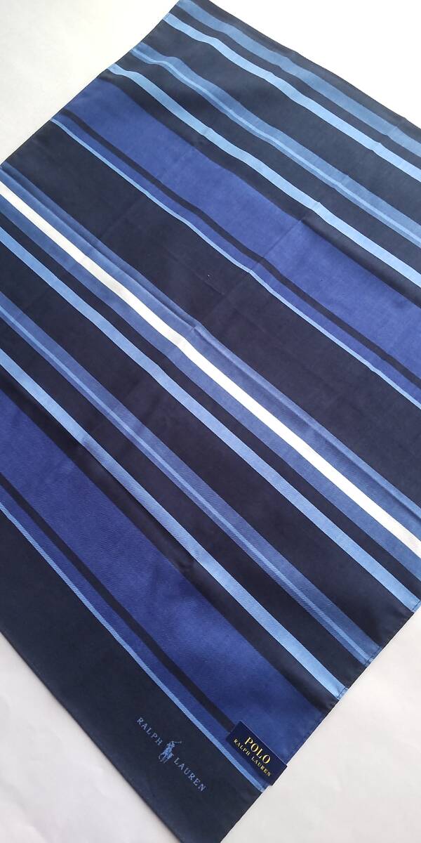 > ★未使用タグ付き★ラルフローレン★ハンカチ★ネイビー、水色ボーダーに、ポニー、文字★50センチ