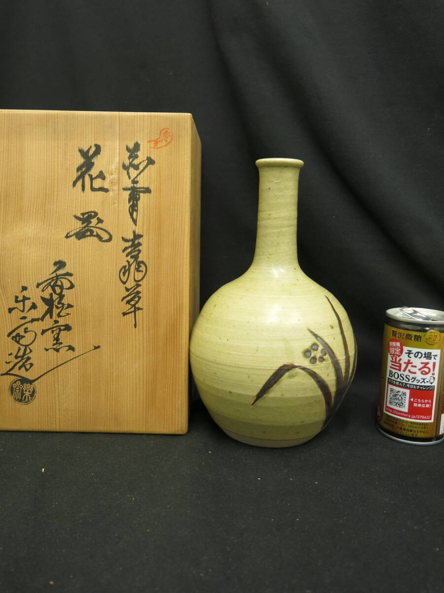 > 赤膚焼 花置 楽斎作 栞 陶印 共箱 華道具 一輪挿し 花入 華道 花瓶 花器 花活 花生 飾り 陶器 美術品 茶道具