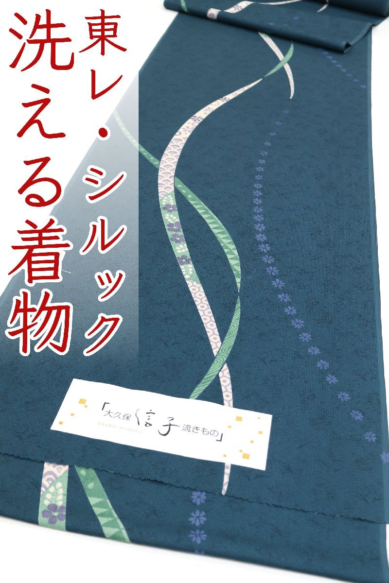 > 和遊館 即決kka2822 東レ シルック 大久保信子 お洒落 小紋 着尺 洗える着物 お仕立て付き