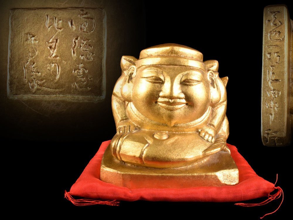 > 【雲】某収集家買取品 人間国宝 平櫛田中 鍍金 恵比寿像 ブロンズ像 重さ3235g 古美術品(大黒天七福神)BY5672 OTfdec