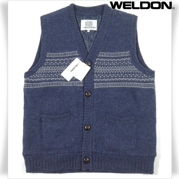 > 新品1円~★定価1.8万 WELDON ウエルドン 秋冬 パジャマ メンズ 冬 暖かい 中綿ベスト 紳士 ウール ナイトガウン 前開き Lネイビー◆7523◆