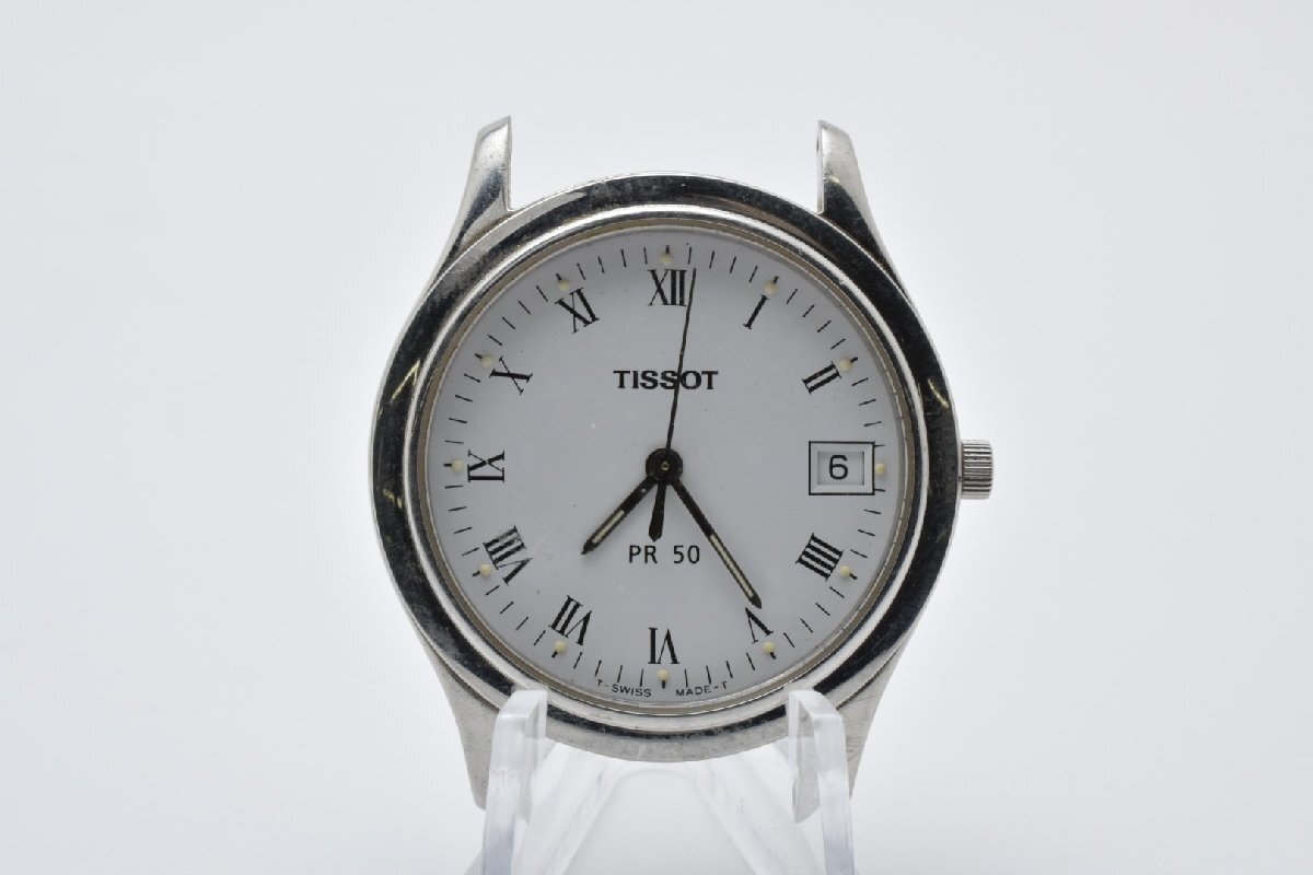 - TISSOT PR50 QUARTZ ティソ ラウンド クォーツ 腕時計 メンズ レディース 3針 デイト ホワイト シルバー J172/272K