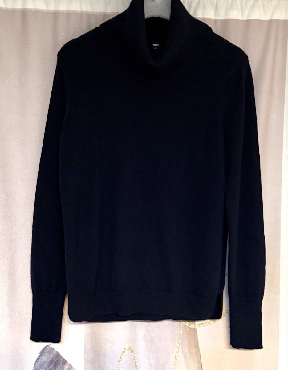 - ユニクロ カシミヤ100% リブ タートルネックニット ネイビー
