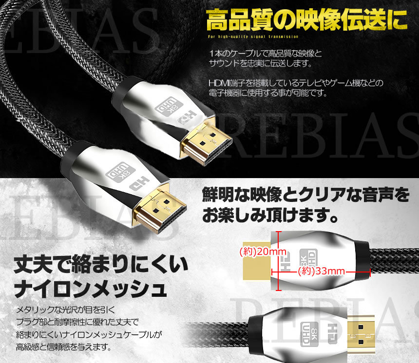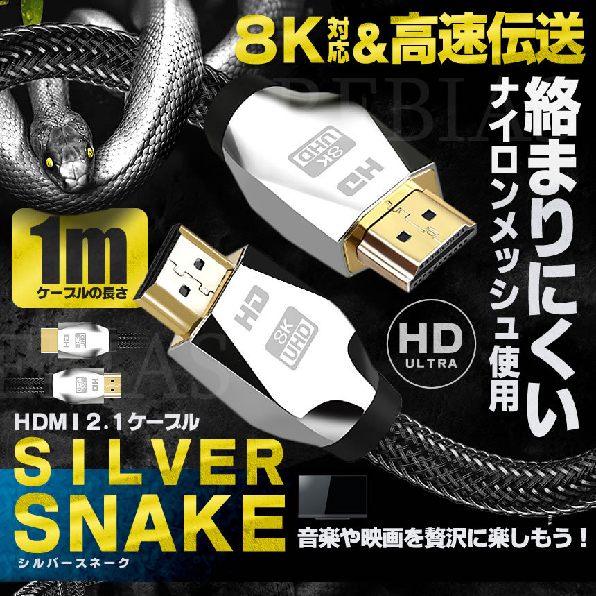 - 送料無料 HDMI 2.1 ケーブル シルバースネーク 1m 映像 音声 8K HD 高速伝送 3D HDR コンポ
