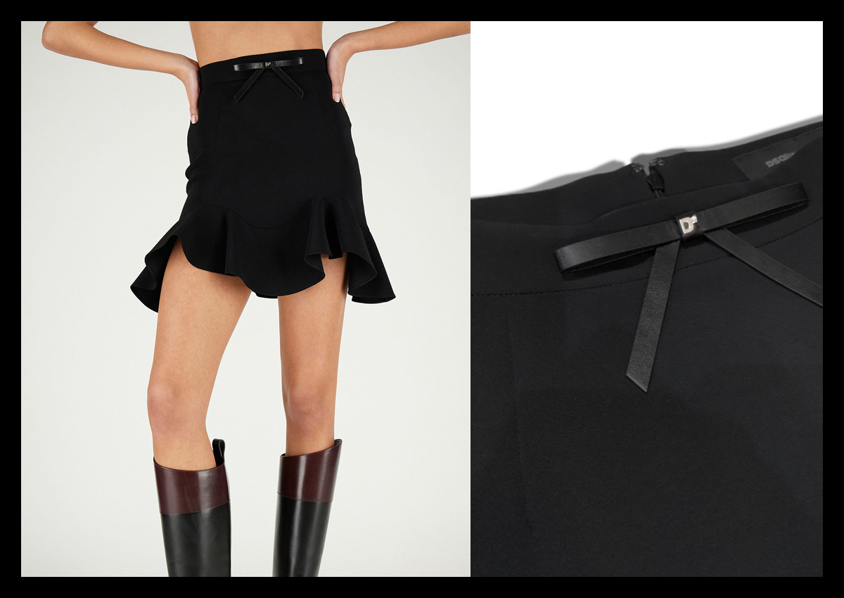 > 定価9.1万 ディースクエアード DSQUARED2 上品な色香を漂わせる大人可愛いレザーリボン付きスカート ミニスカート イタリア製