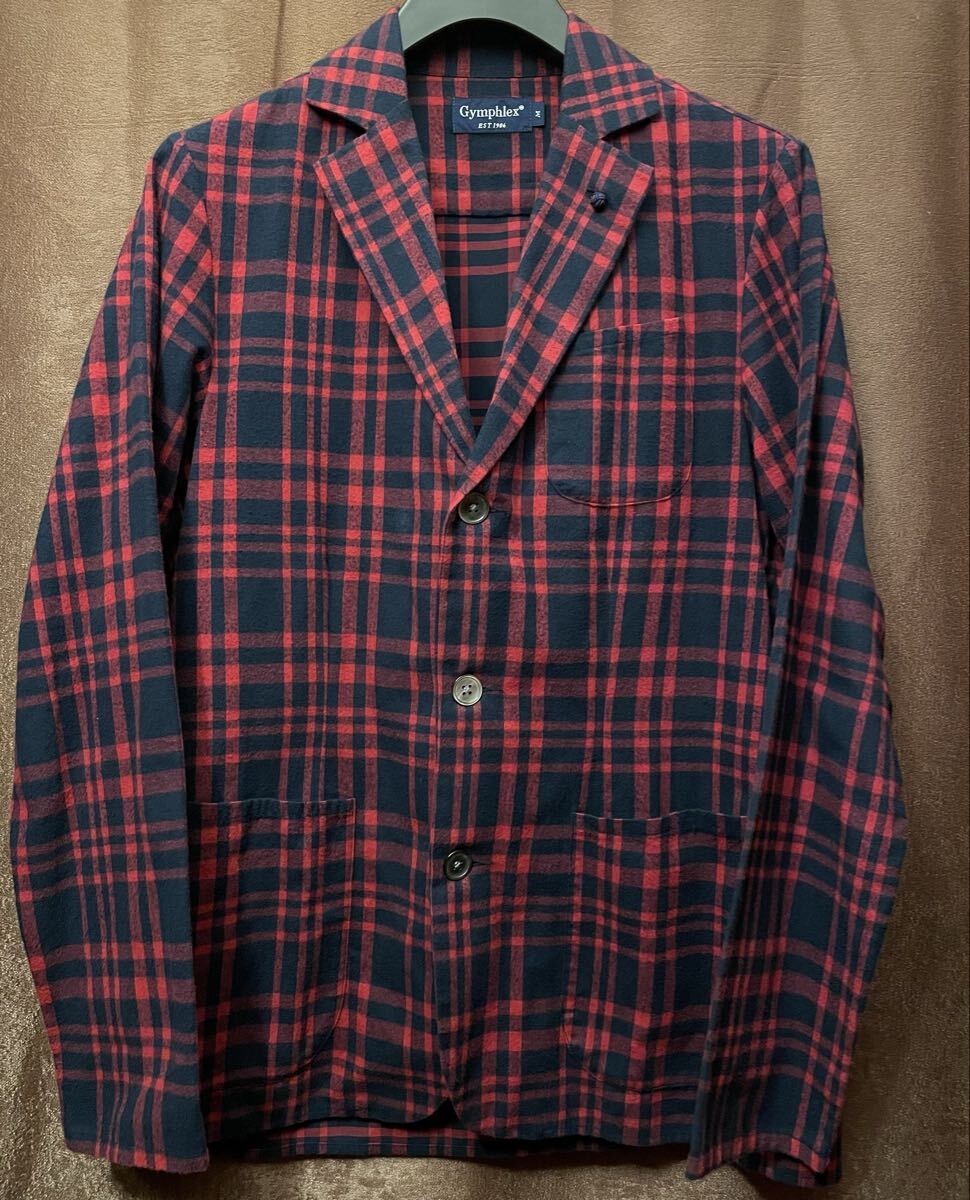 > MADE IN JAPAN製 Gymphlex チェック柄 テーラードジャケット レッド×ネイビー Mサイズ ジムフレックス 日本製 アンコンジャケット 赤 紺