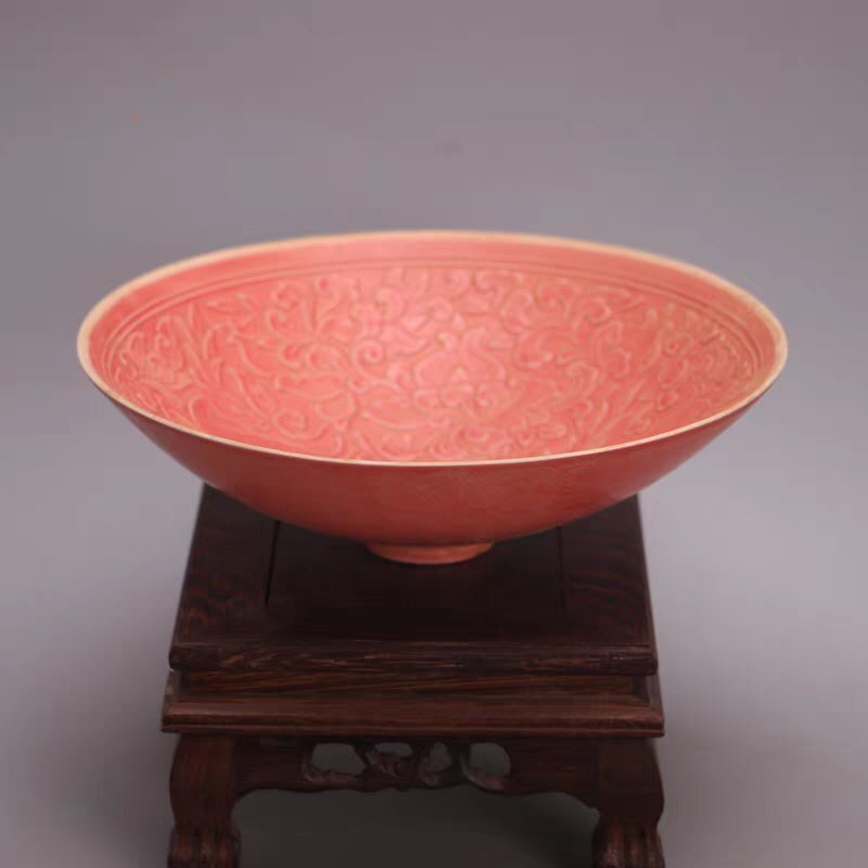 - 【五大名窯】定窯 紅釉 鹿文 笠形碗 吉祥の飾り皿 景徳鎮 磁器 置物 装飾 収蔵 コレクション